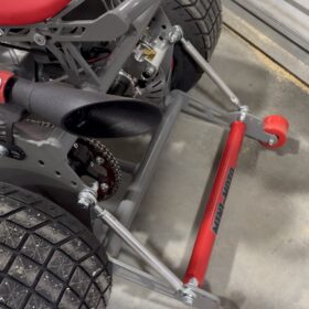 These side-mounted axle pegs allow controlled slides and spins, making the trike ideal for stunt riding and drifting. They’re also a visual cue that this beast was built for fun and flair.